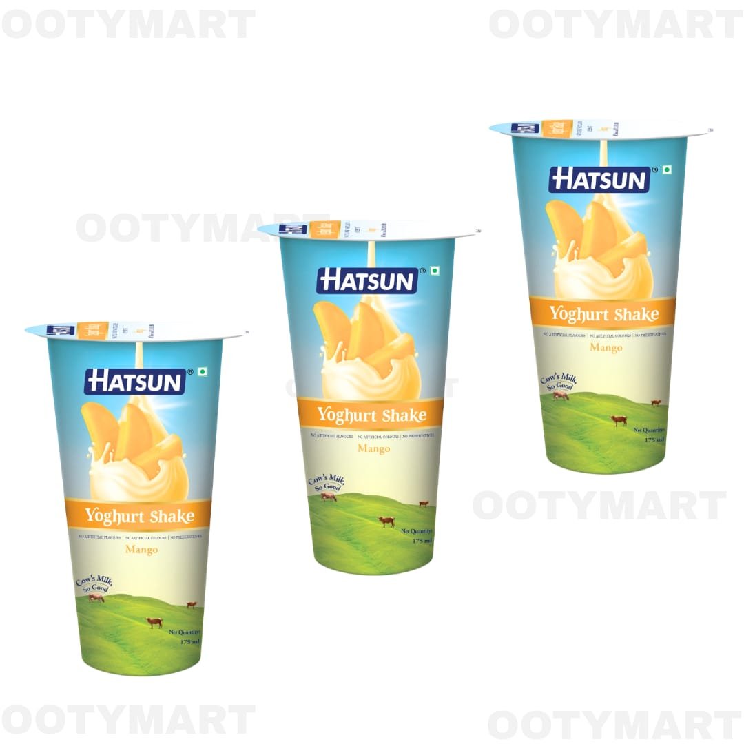 Enjoy the rich and refreshing taste of Hatsun Mango Yoghurt Shake. A delicious ready-to-drink pack of 3, perfect for daily refreshment. Available for home delivery across Ooty.