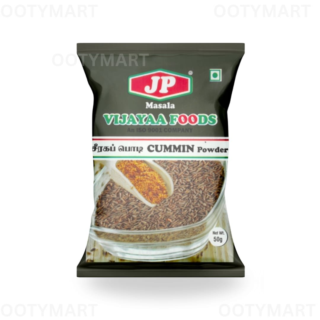 JP Cumin Powder – Finely ground premium jeera powder with strong aroma and rich flavor. Perfect for curries, gravies, and spice blends. Available at OOTYMART with all over India delivery.