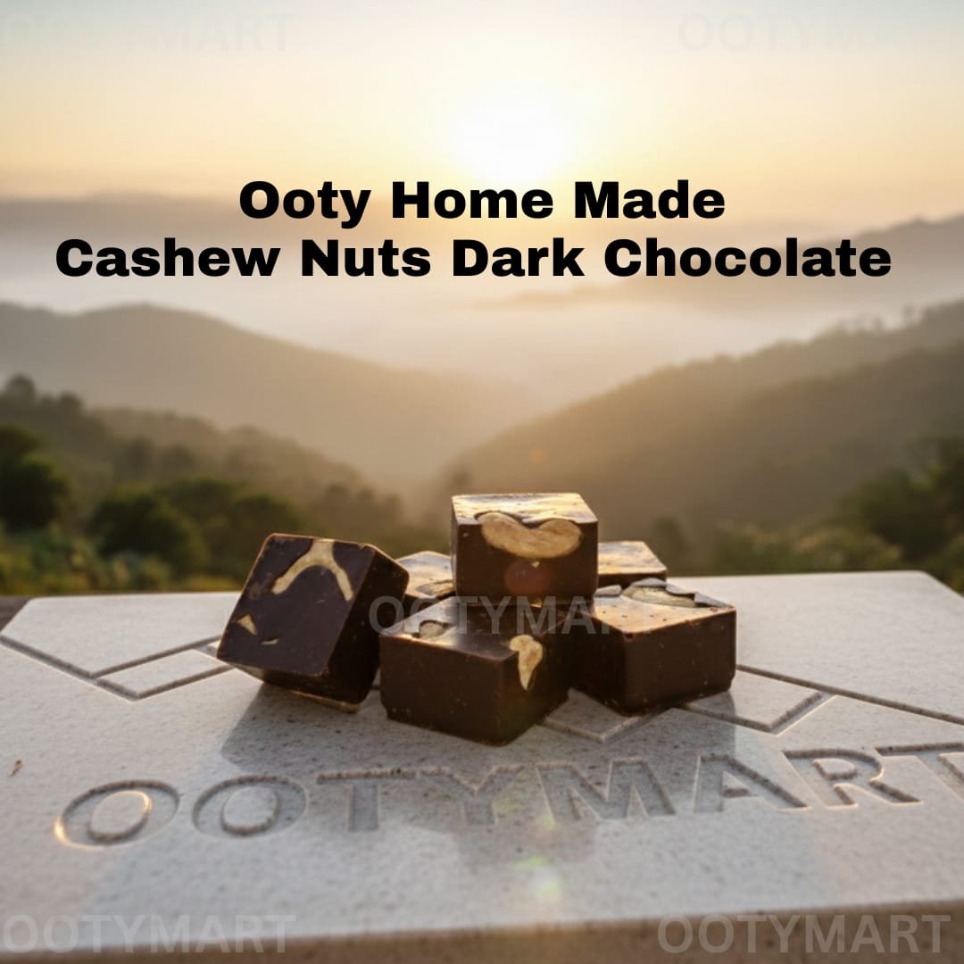 Discover the bold flavor of Ooty Home Made Cashew Dark Chocolate from www.ootymart.com. This rich, intense dark chocolate is perfectly paired with crunchy cashews, offering a satisfying and indulgent treat in every bite.