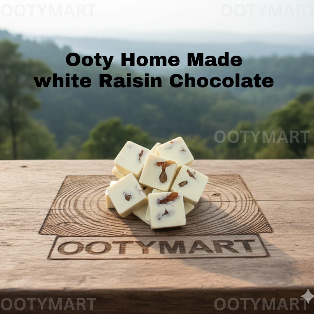 Indulge in the creamy richness of Ooty Home Made Raisin White Chocolate from www.ootymart.com. This delightful treat combines smooth white chocolate with juicy raisins, offering a perfect balance of sweetness and texture in every bite.