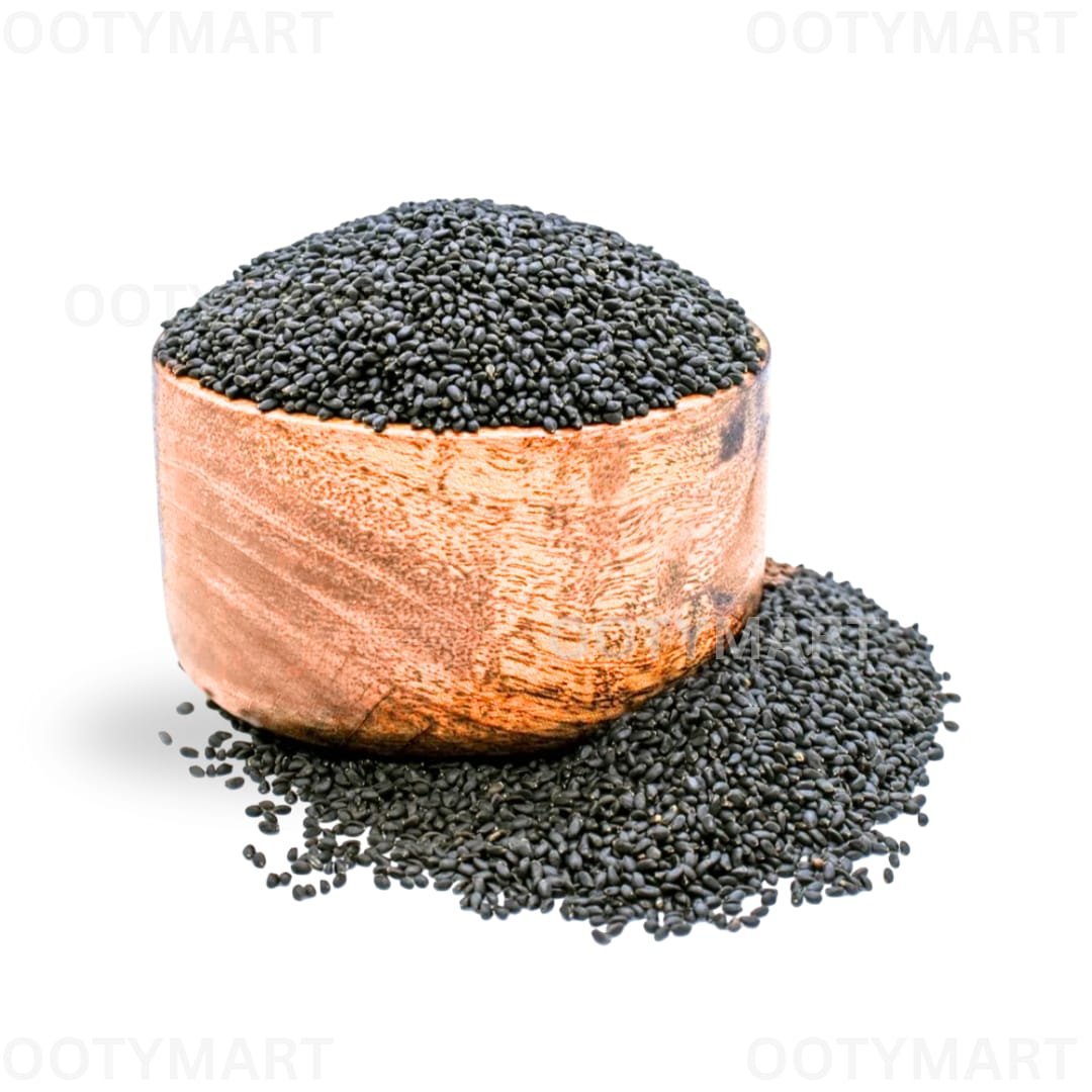High-quality Sabja Seeds (Basil Seeds) known for their cooling properties and health benefits. Fresh stock available from Ooty with all over India delivery by OOTYMART.